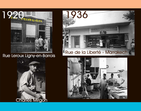 En 1936, Charles, Andrée Mirgon et leurs quatre enfants s’installent à Marrakech, rue de la Liberté, où la boulangerie pâtisserie « La Renaissance » est rapidement reconnue de tous pour la qualité de ses pains, gâteaux et chocolats.